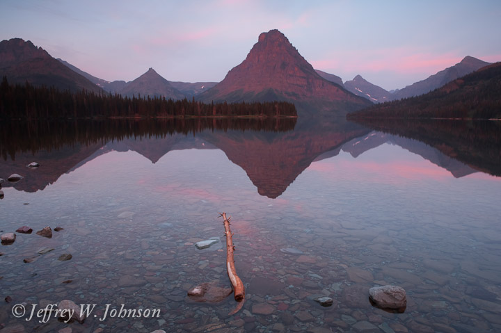 In spite of the many lakes and mountains, it is often difficult to get reflections due to the winds, especially on the east side of the park. We were especially fortunate to have calm sunrises at Two Medicine, Many Glaciers, and even St. Mary Lake. The reflections themselves are beautiful, but even better is the calm serene feeling that penetrates your soul as the sun either brightens it's glow or extinguishes it when there is no wind or waves. Here are some of the reflections that I liked the best.